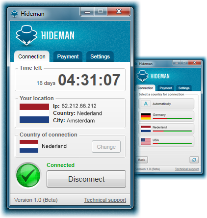 Hideman es un programa que nos permite de forma fácil y rápida ocultar nuestra dirección IP, de forma tal que podremos acceder a contenido que esta bloqueado para países en donde vivimos o para que las páginas que vistamos no se den cuenta desde donde venimos o entramos a ese sitio web. Esta tecnología esta al alcande de todos y resulta muy efectiva en su uso en el día a día.