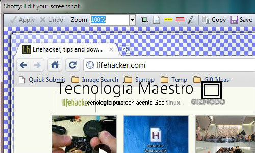 Shotty es un programa que sirve para hacer capturas de pantalla y la verdad es que es de muy fácil uso además de muy configurable, una vez instalado lo único que tenemos que hacer es dirigirnos a la barra y presionar el icono de Shotty que aparece allí, luego podremos seleccionar el tipo de captura que queremos hacer pudiendo elegir tres: la pantalla completa, una zona especifica de la pantalla, o solo una ventana de un programa en Windows, basta con seleccionar una de estas para hacer la captura de pantalla, además posee un pequeño editor que nos permite añadir ciertas cosas, como texto por ejemplo, antes de guardar la imagen.